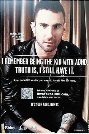 Maroon 5-Sänger, Gitarrist und Schauspieler Adam Levine in der US-amerikanischen Pharmakampagne „Own Your ADHD"