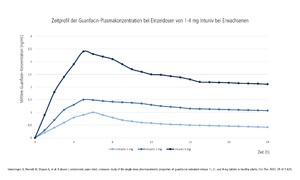 Zeitprofil der Guanfacin-Plasmakonzentration bei Einzeldosen von 1-4 mg Intuniv bei Erwachsenen